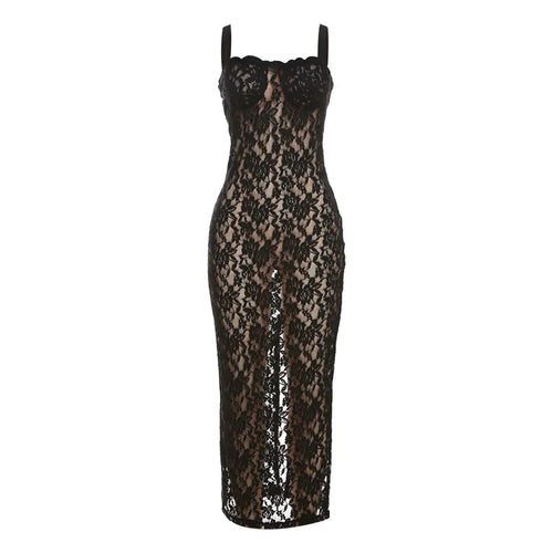 Elegancka Czarna Sukienka Bodycon Z Koronkowym Wzorem Kwiatowym
